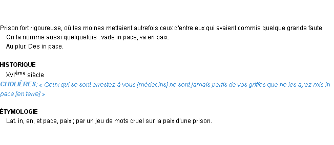 Signification du terme « pace », parution de 1876 (dictionnaire le Littré).