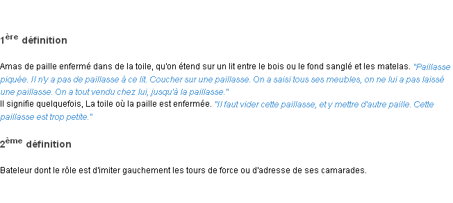 Définition du mot « paillasse » par l’Académie Française (édition de 1986).