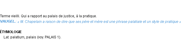Signification du terme « palatial », parution de 1876 (dictionnaire le Littré).