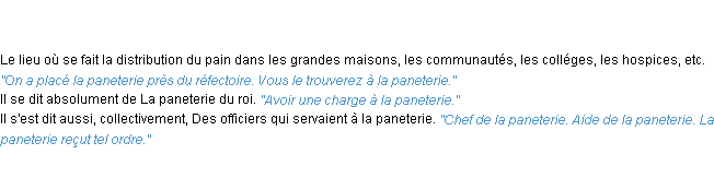 Ancienne signification issue du dico de l’Académie Française, parue en 1798.Merci à Stéphanie et Tatienne pour la numérisation du mot paneterie.