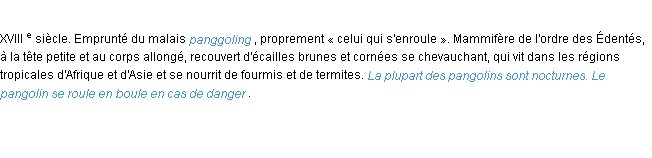 Définition développée dans dictionnaire d’Emile Littré (ancienne édition de 1876).Merci à Mariette et Romain pour la numérisation du mot pangolin.