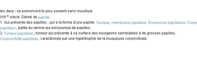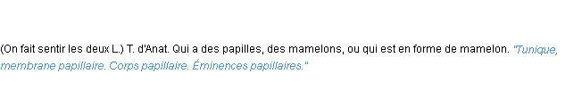 Définition de « papillaire » de source académique (Académie Française, parution de 1932).