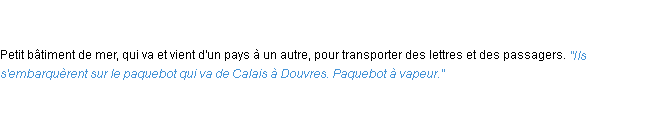 Définition académique pour le terme « paquebot » (parue en 1932).