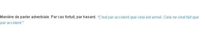 Ancienne définition de « par accident » de source académique (Académie Française, parution de 17962).Merci à Stéphane et Florentin pour la numérisation du mot par accident.
