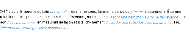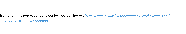Ancienne signification du terme « parcimonie », parution de 1835, dictionnaire académique Français.