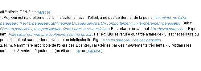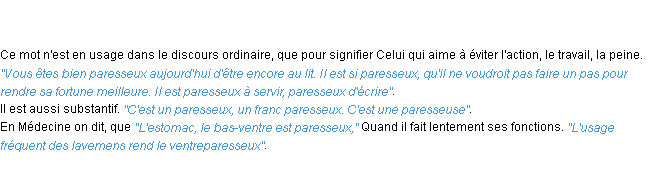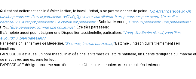 Définition de « paresseux » de source académique (Académie Française, parution de 1932).