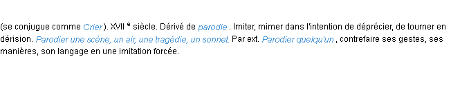 Signification éditée en 1932 pour le terme « parodier » par l’Académie Française.