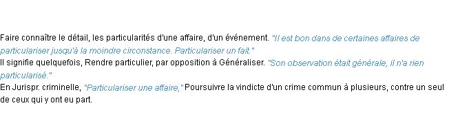 Ancienne signification du terme « particulariser », parution de 1835, dictionnaire académique Français.