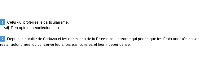 Définition du mot « particulariste » par Emile Littré (édition de 1876).Merci à Jourdain et Cécile pour la numérisation du mot particulariste.
