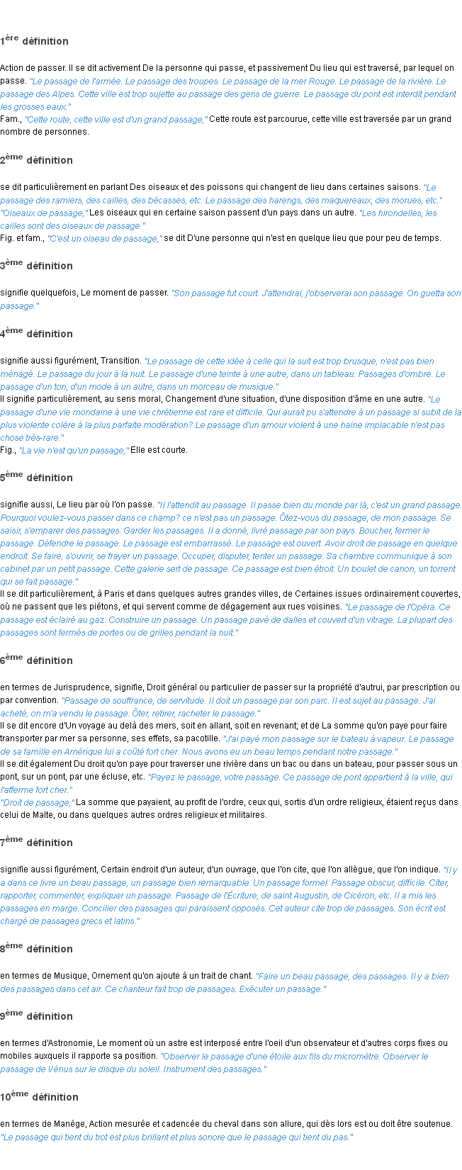 Définition académique pour le terme « passage » (parue en 1932).