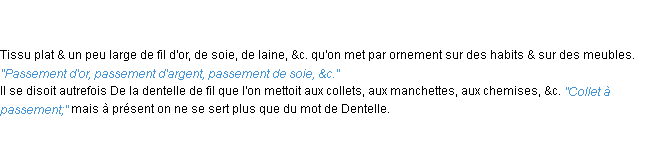 Définition du mot « passement » par l’Académie Française (édition de 1932).