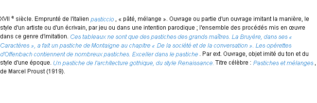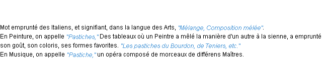 Ancienne définition développée dans dictionnaire académique, 1798.Merci à Olivier et Maximilien pour la numérisation du mot pastiche.