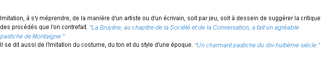 Signification du terme « pastiche », parution de 1932, dictionnaire académique Français.