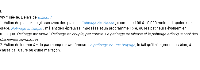 Définition du mot « patinage » par l’équipe de la-definition.fr (édition de 2011).