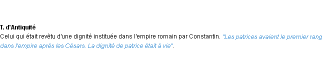 Ancienne définition du mot « patrice » par l’Académie Française (édition de 1835).