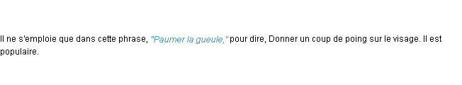 Signification parue en 2009 (source la-definition.fr).Merci à Corin et Adrienne pour la numérisation du mot paumer.