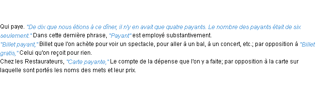 Ancienne définition de l’Académie Française (édition de 1798) pour le mot « payant ».Merci à Fifi et Jérémie pour la numérisation du mot payant.