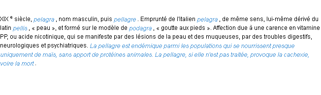Définition du mot « pellagre » par l’Académie Française (édition de 1932).