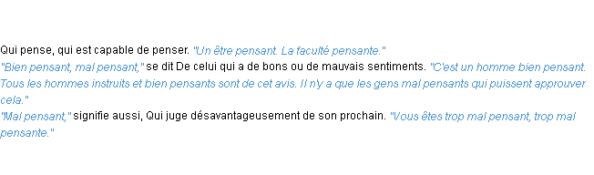 Ancienne signification du terme « pensant », parution de 1835, dictionnaire académique Français.