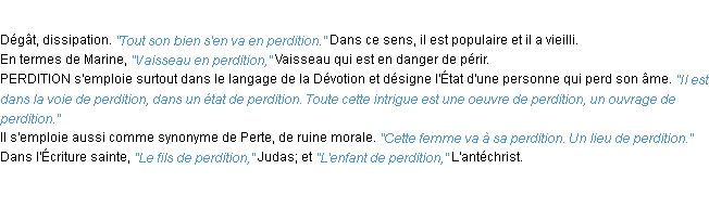 Définition du mot « perdition » par l’Académie Française (édition de 1932).