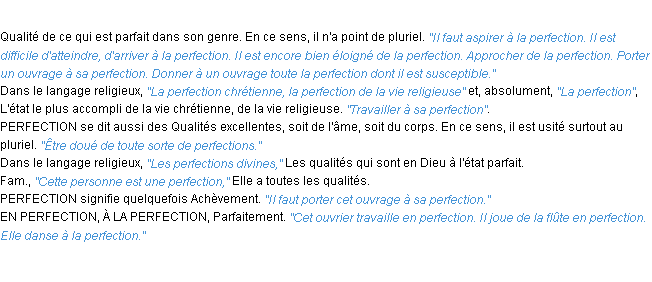 Signification du terme « perfection », parution de 1932, dictionnaire académique Français.