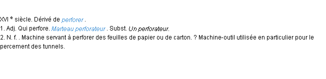 Signification éditée par l’Académie Française, année 1932.Merci à Sévérine et Sévérine pour la numérisation du mot perforateur.