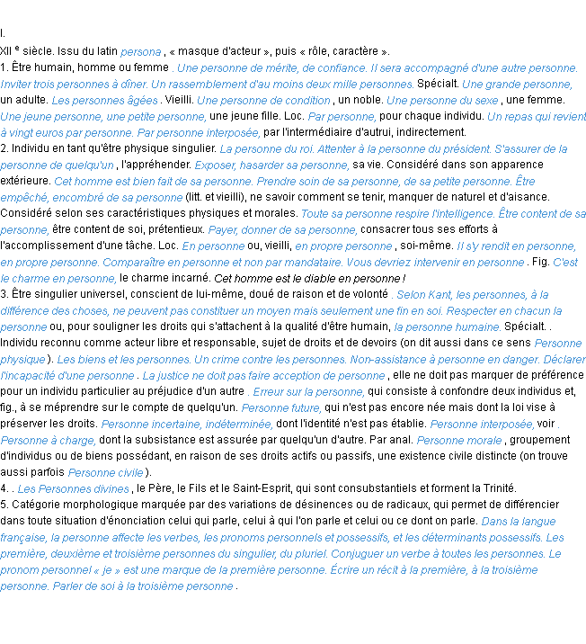 Définition de l’équipe de la-definition.fr (édition de 2009) pour le mot « personne ».Merci à Lucie et Géraud pour la numérisation du mot personne.