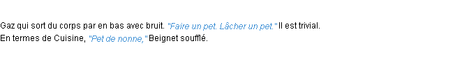 Ancienne signification éditée en 1835 pour le terme « pet » par l’Académie Française.