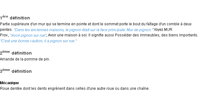 Ancienne signification du terme « pignon », parution de 1835, dictionnaire académique Français.