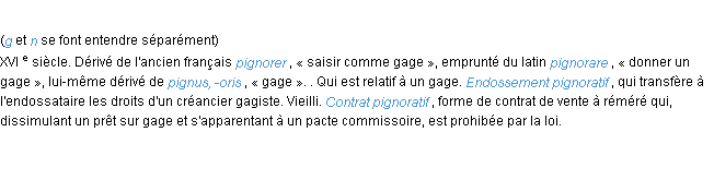 Signification du terme « pignoratif », parution de 1932, dictionnaire académique Français.