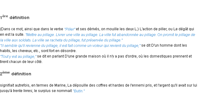 Ancienne signification éditée par l’Académie Française, année 1798.Merci à Nicolette et Lucie pour la numérisation du mot pillage.