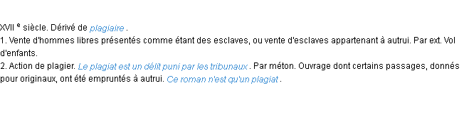 Ancienne définition du mot « plagiat » par l’Académie Française (édition de 1798).Merci à Gaetane et Patrice pour la numérisation du mot plagiat.
