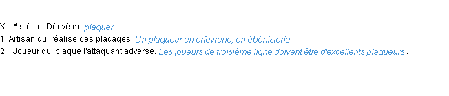 Signification éditée en 1932 pour le terme « plaqueur » par l’Académie Française.