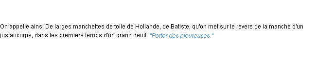 Ancienne signification issue du dico de l’Académie Française, parue en 17962.Merci à Gustave et Honoré pour la numérisation du mot pleureuses.