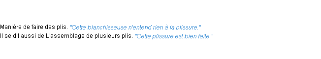 Définition de l’Académie Française (édition de 1986) pour le mot « plissure ».