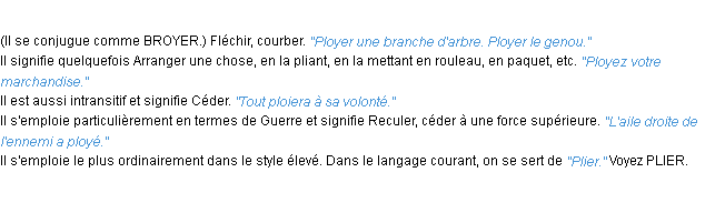 Définition « ployer » du dictionnaire académique Français, parution de l’année 1986.