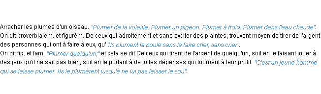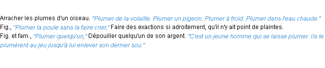 Signification éditée en 1932 pour le terme « plumer » par l’Académie Française.