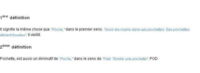 Ancienne définition académique pour le terme « pochette » (parue en 1835).