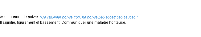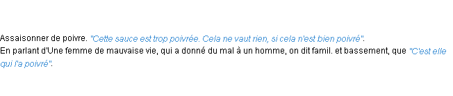 Ancienne signification éditée en 1835 pour le terme « poivrer » par l’Académie Française.