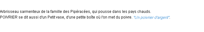 Ancienne signification éditée par l’Académie Française, année 1798.Merci à Nathalie et Edgard pour la numérisation du mot poivrier.
