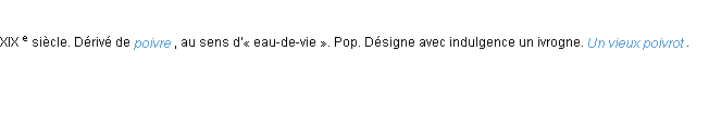 Signification issue du dico de l’Académie Française, parue en 1932.Merci à Gilberte et Matthieu pour la numérisation du mot poivrot.