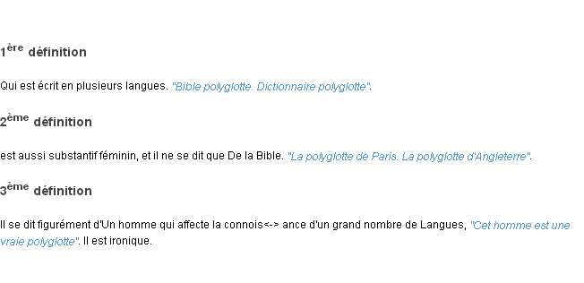 Ancienne signification éditée par l’Académie Française, année 1798.Merci à Céline et Gratien pour la numérisation du mot polyglotte.