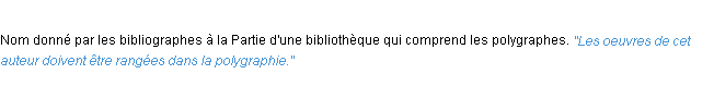 Définition « polygraphie » du dictionnaire académique Français, parution de l’année 1986.