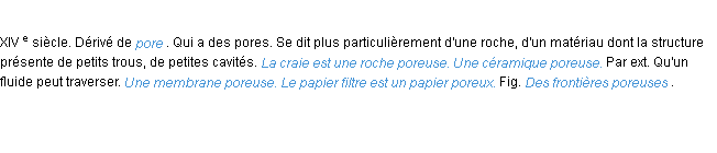 Ancienne signification éditée par l’Académie Française, année 1798.Merci à Maximilienne et Amélie pour la numérisation du mot poreux.