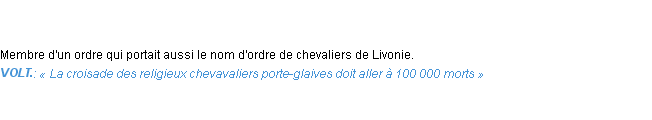 Signification développée en 1876 par Mr Littré (dictionnaire dit d’Emile Littré).Merci à Gérald et Julienne pour la numérisation du mot porte-glaive.