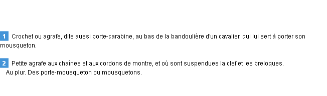 Signification du terme « porte-mousqueton », parution de 1932, dictionnaire académique Français.
