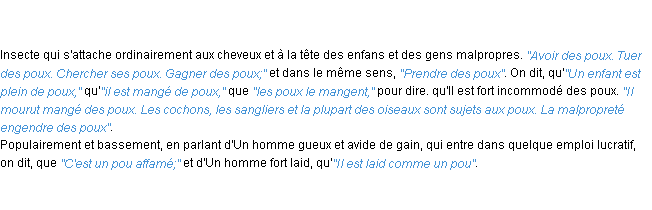 Ancienne définition académique pour le terme « pou » (parue en 1835).