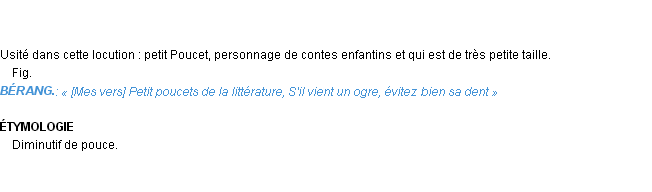 Définition du mot « poucet » par Emile Littré (édition de 1876).