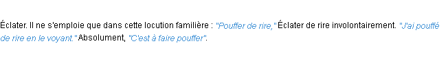 Ancienne signification du terme « pouffer », parution de 1798, dictionnaire académique Français.Merci à Gwenaelle et Damien pour la numérisation du mot pouffer.