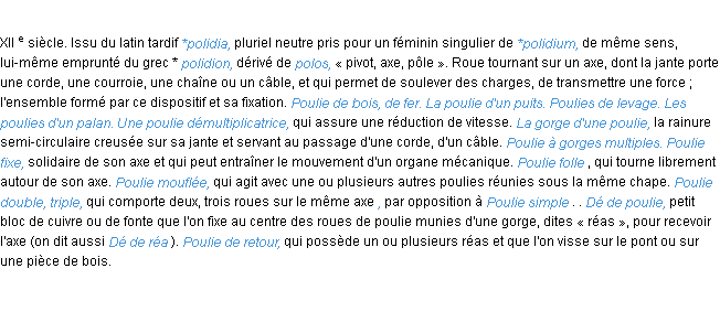 Définition du mot « poulie » par l’Académie Française (édition de 1986).
